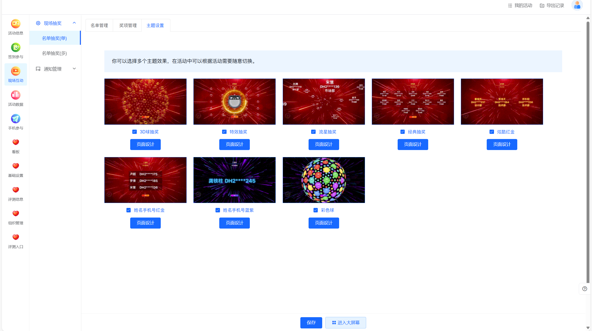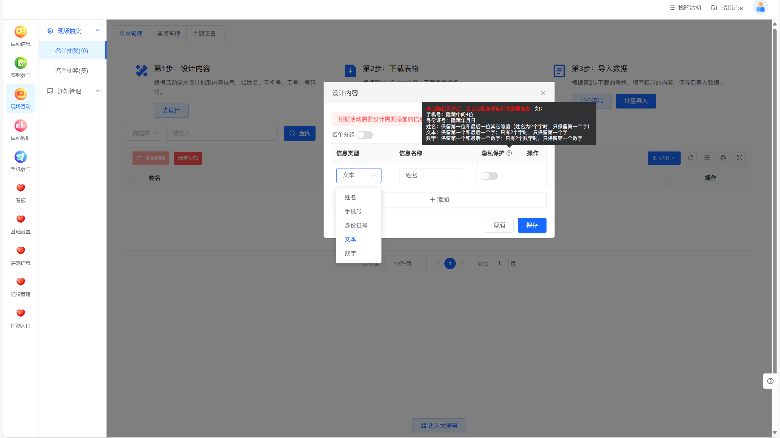 隐私保护:通过隐私保护功能,大屏端展示的名单自动进行脱敏处理,确保参与者信息的安全。