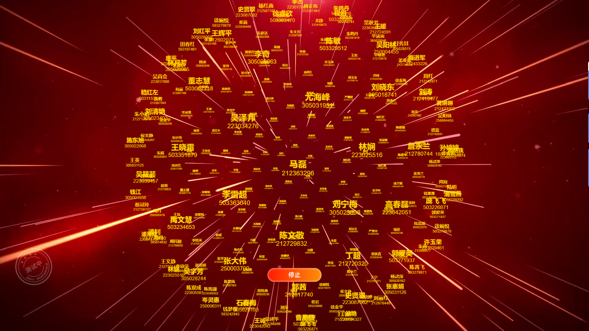 滚动名字效果:在抽奖过程中,大屏幕上滚动展示中奖者信息,多种动画效果如滚动、翻转等,增强仪式感和视觉效果。