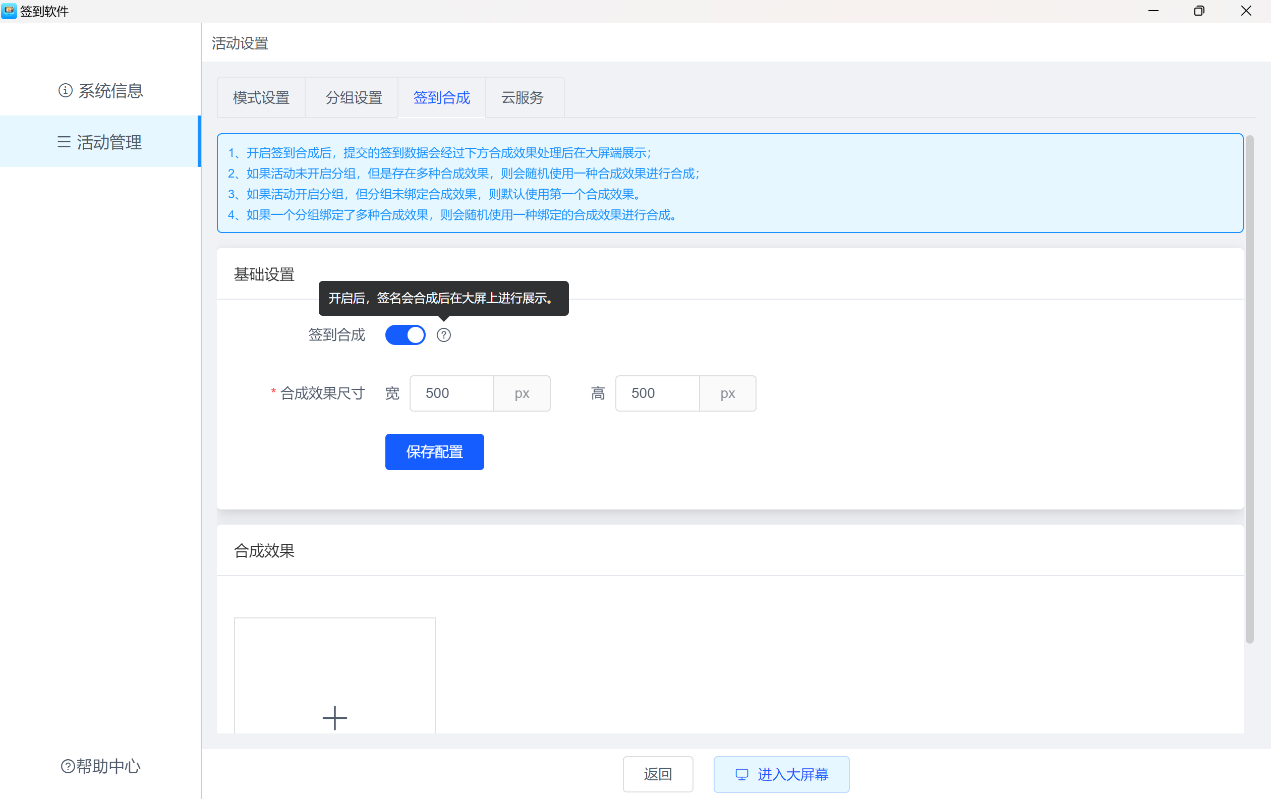 支持多种合成效果设置,分组绑定不同的合成效果,使签到展示更加个性化。