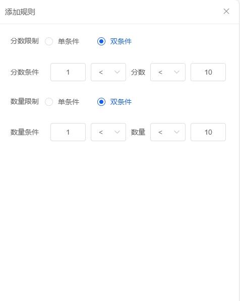 统一限制设置后所有指标的打分必须全都满足该条件,单独限制需要对每个指标的最高分和最低分注意限制。